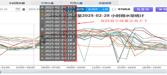 位于三環南路的 TCL 翠園小區,水壓不穩的情況時有發生。我司通過分區計量系統與營銷系統的比對分析,發現該小區夜間最小流量異常偏高,初步判定存在物理漏損。